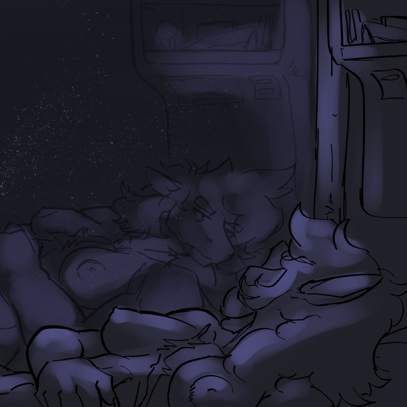 Of course she had to get like this in front of him, of all people. Make him want to comfort her. Anyone else... she could take it. But this little fucker, something about him just makes her feel. Maybe if things were different, if her biology didn't play such an outsized role in their plans... maybe she could admit she already knows why.