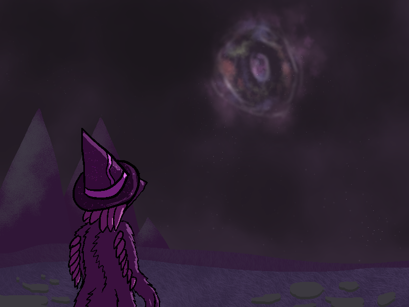 I stare into the Eye of the Yearning, the world stained lavender, a rare event, as my familiar Once-Wish paces around, grinning.