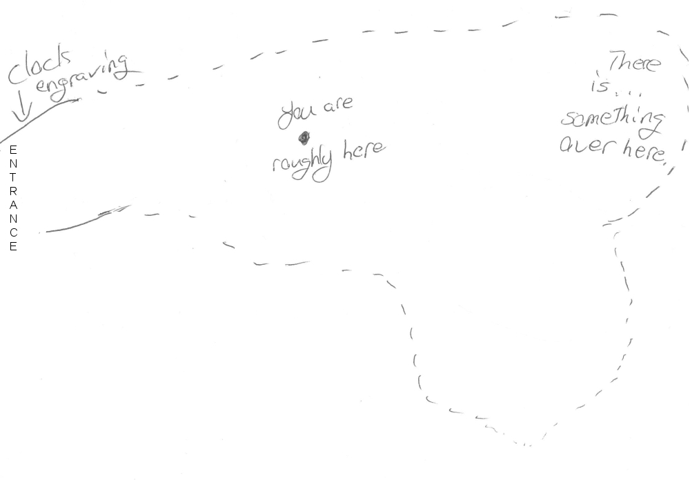 However, what you can tell is the cave either is, or was inhabited. On the wall, in the illuminated part of the cave, you can see a a picture of a... clock face without a minute or hour hand, carved into the stone.