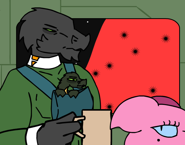 Vul: “…heh. That wasn’t a rebellion.” she gesture towards the map, “They came from beyond the forbidden zone, from outside our part of the galaxy, a completely unknown force. As the Forksa, Khrax and Ek’tall fell to their might, the rest of us united. We might have had our squabbles, our grudges and wars, but in the end this enemy was a threat to us all, thus uniting us under one cause. The Wroknir and Kelshin joined with their massive ship armadas, the Mrrgh and Tuul with their near infinite forces of ground troops, the Korak and Gartag with their intelligence and spy networks, and finally the Xot with their odd technology. Even the Thanro joined us, financing the whole thing. Only the Raolme stayed out of the war, for the most part. We united to create the biggest fighting force this galaxy has ever seen, and what follow what not some paltry rebellion. It was a galaxy wide war, a war for our continued freedom, a war which like we have never seen before. But even as we numbered in the hundreds upon hundreds of billions, with every last secret super weapon and tactic, even with the precursor technology we unearthed, in the end… we lost.” Her body visible tenses for a second, before she sigh and regain her composure, “So no, we cannot fight them directly. We tried that once, when we were at the height of our power, and we failed.”