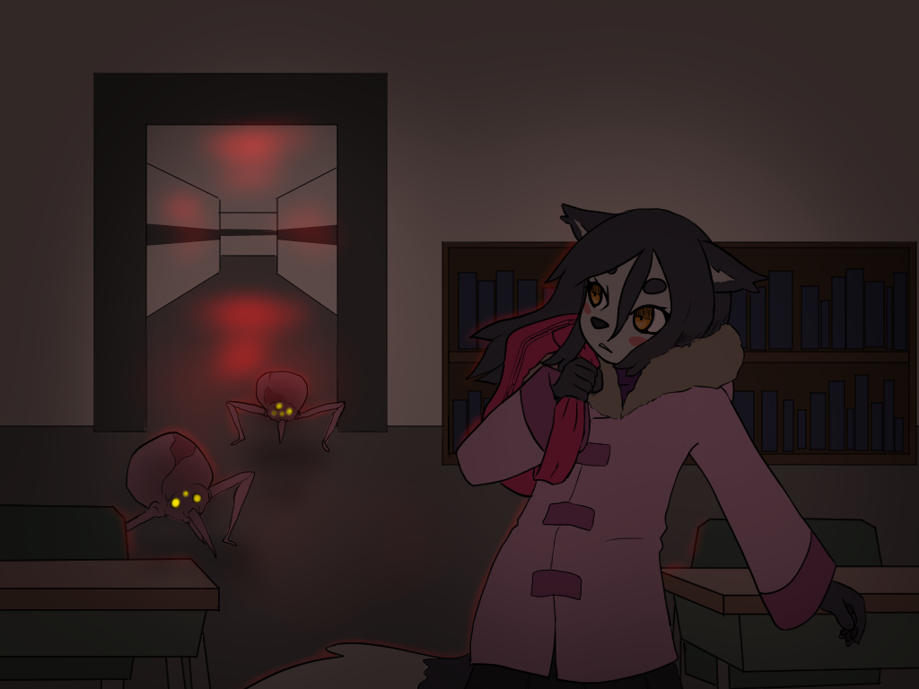 The door slides closed behind me and it takes a moment for my eyes to adjust. Everything is shut off for the night, so I should hurry out of here. There's probably not much of anyone in the [School] area. There's probably someone working in the secret [Government Laboratory], though. It's not really a secret, but they do stuff that's classified, since both my parents work there and won't tell me what they do, beyond the generic science stuff that doesn't actually give away the mysteries of why the planetary government would build a lab in a remote location like this.