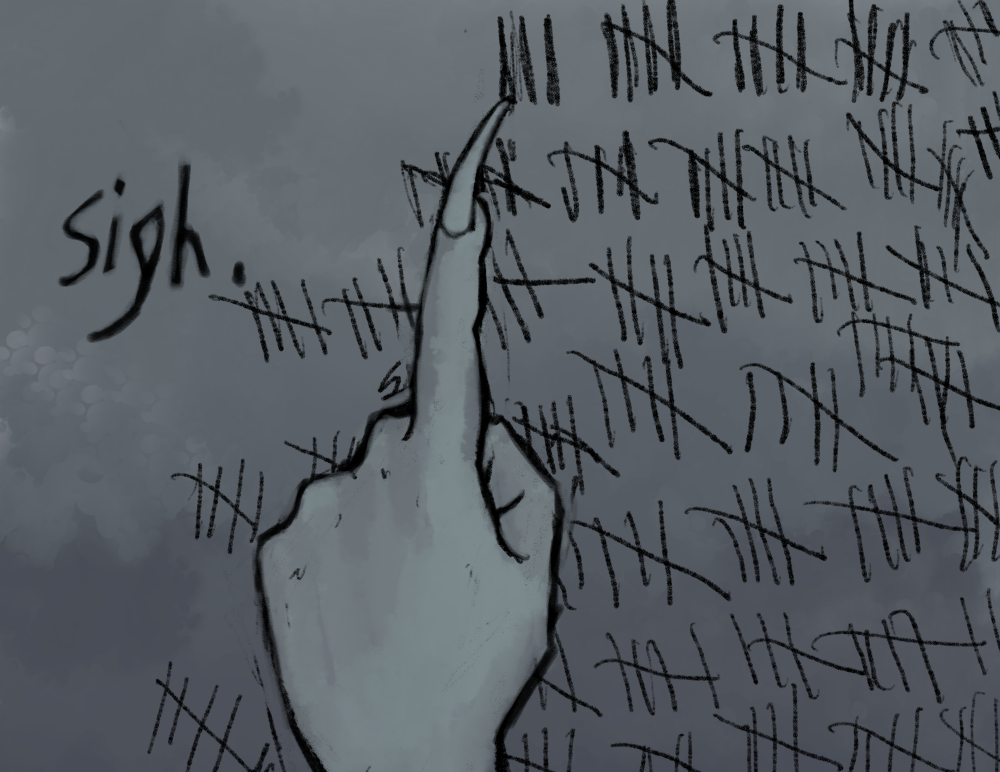 YOU scratch another tally into the wall. At one point, this helped YOU to keep time. Now, YOUR failed attempts at escape have been too numerous for anything but the cold drywall to bother tracking. This is little more than mindless ritual now. A vain attempt to convince YOURSELF that, if only in this miniscule way, what YOU are doing here matters. It changes something.