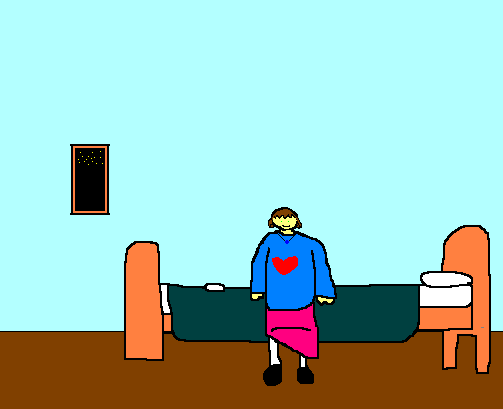 Immediately change from pants to skirt, then pose without shirt on in a badass manner.
