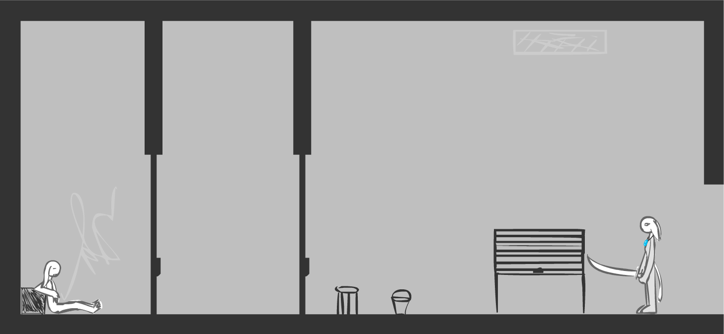 Well he can't leave now, it's already night! I don't even know if he could swing a sword correctly, he looks atrophied enough.