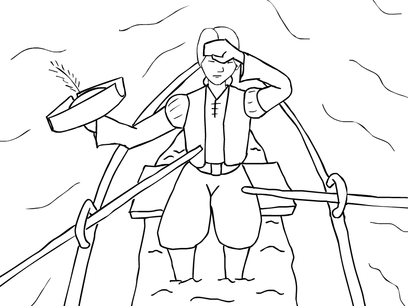 Yesterday morning, we were caught in a storm. Most of the day it looked like we could make it, but around evenening, the bilge was halfway full of water and raising, despite our best efforts to pump it out. Then the main mast collapsed, the ship got really wonky and I was trapped alone on the quarterdeck. Lucky as I was, somebody had already tried to prepare the row boat for launching, so I got in and rowed like my life depended on it, which was kinda the case. Eh, you know what I mean.