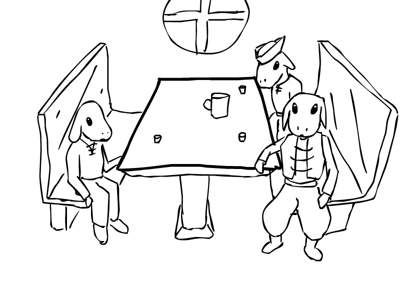 I leave the room and close the door. The ‘bolds are arguing a bit, it seems.