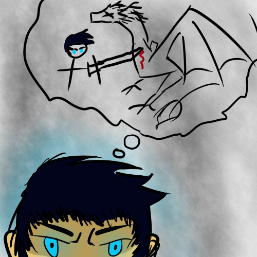Uluaris looks at my face, and I can see the blue and black inside of him begin to churn, while the red monster adjusts it's grip on his throat. He turns and begins to walk away.