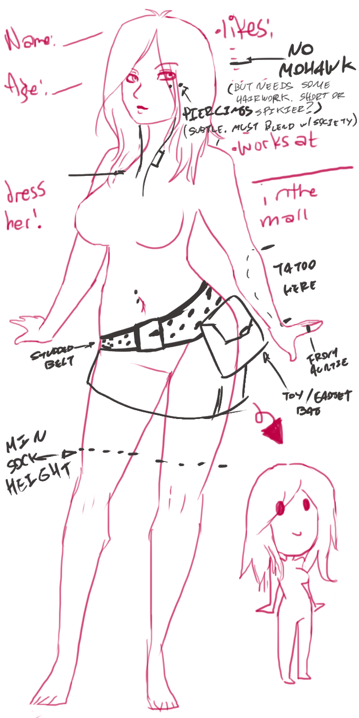 Alright, here's the basic breakdown. There's more to Eli than we've gone through. Eli just got off her shitty shift at Target and was thinking of going to the mall, the movies, or some other social area where she can try to find her other nerdy friends