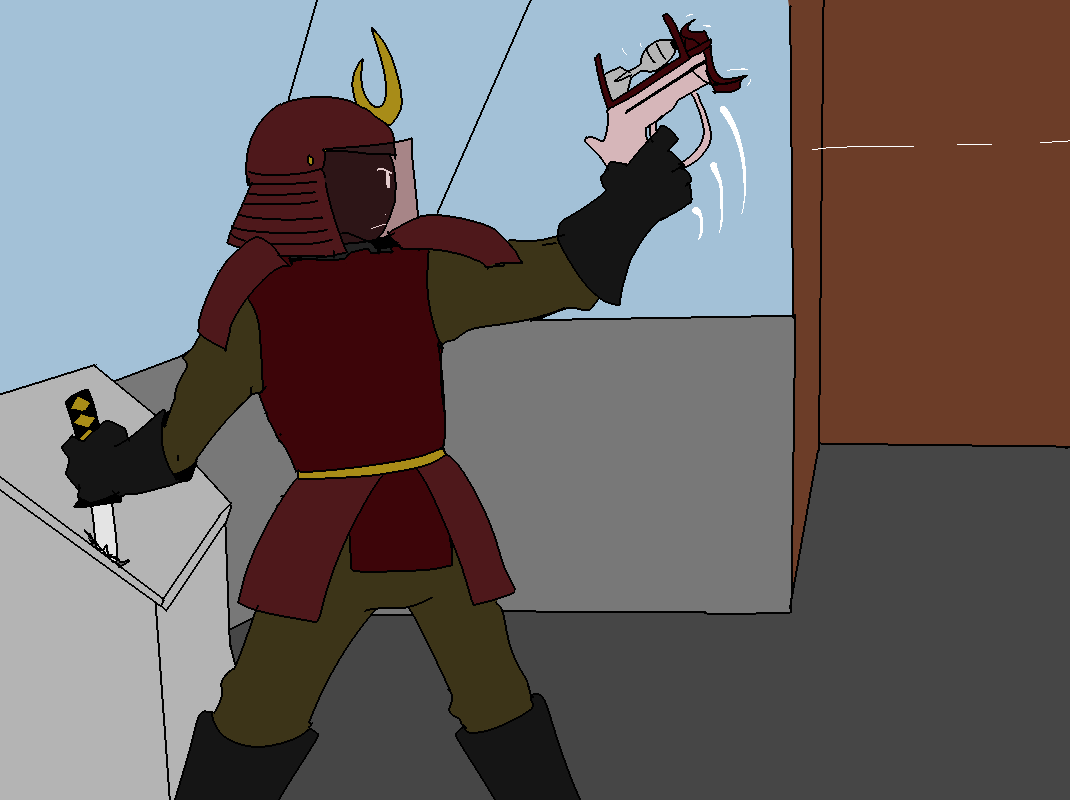 (point it towards the larger crate to block any possible attack.) With your other hand,