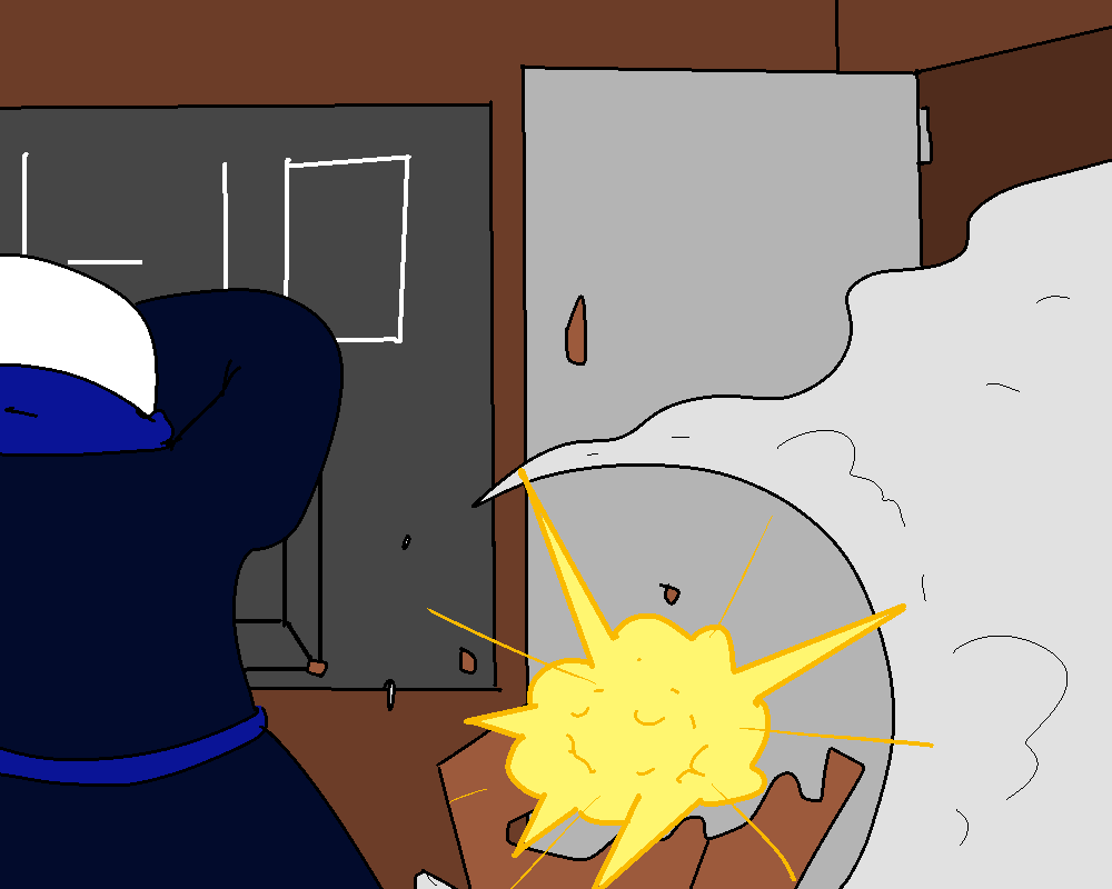 trip over it. Now, stand to the right of the Large crate and use the WOODEN DAGGER-SHEILD