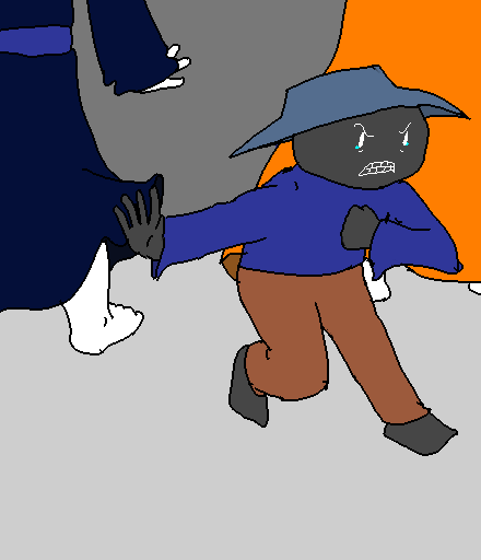 Simon stomps his feet to make it sound like he's leaving. Karsci does the same, and Slater... doesn't have feet.