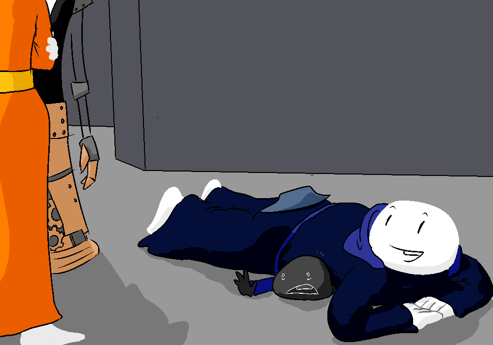 Everyone else: disarm the dokdokdokdokdok and restrain him in some manner. Possibly by having Simon sit on him. Start interrogation by asking him why he wants the world to be destroyed so badly.