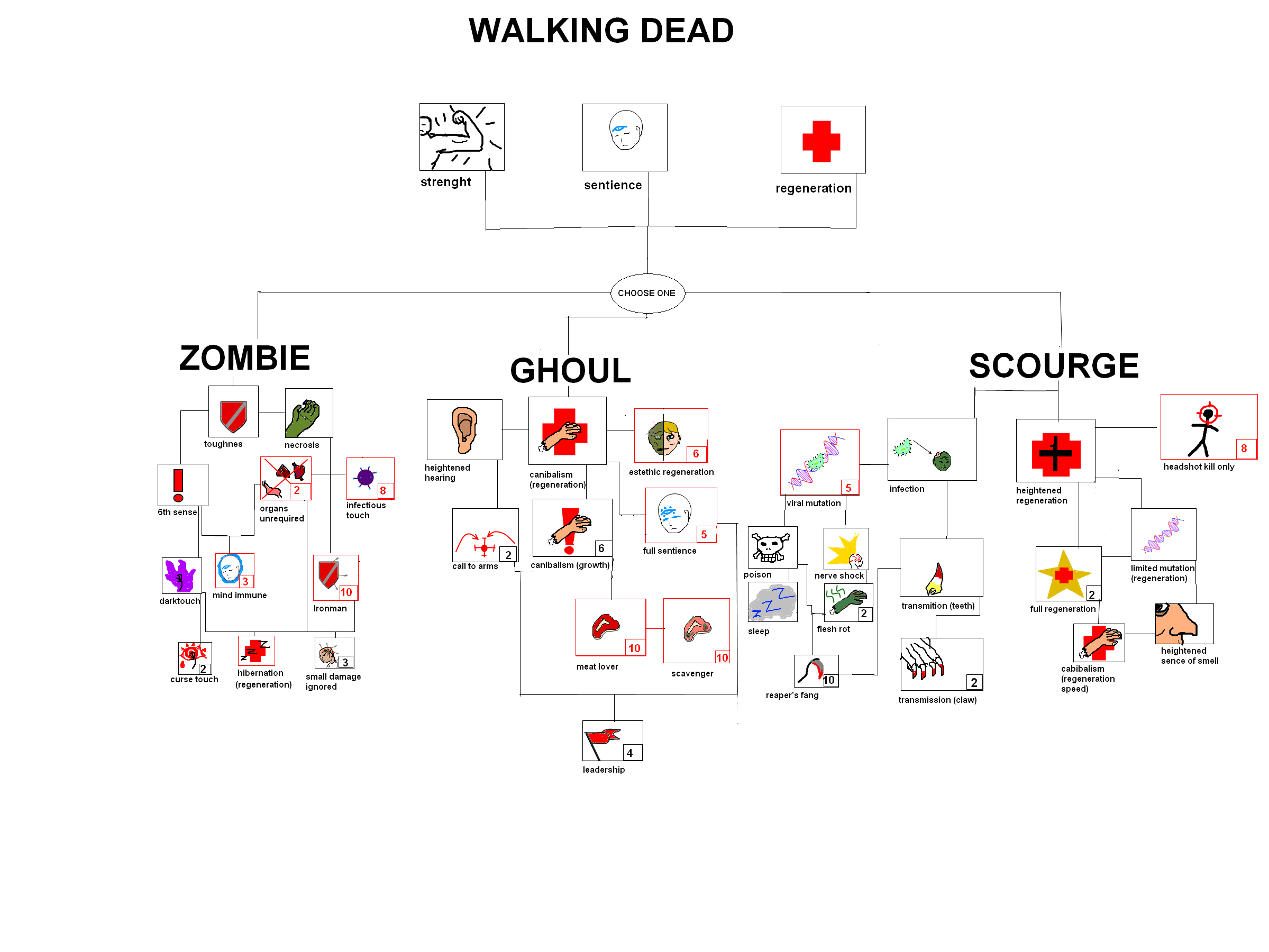 infectious touch- you are so full of disease, parasites and anything else living in your rotten hide that comming in contact with a living creature's open wound will automatically cause it to infect, useles in combat, except against reoccuring enemys