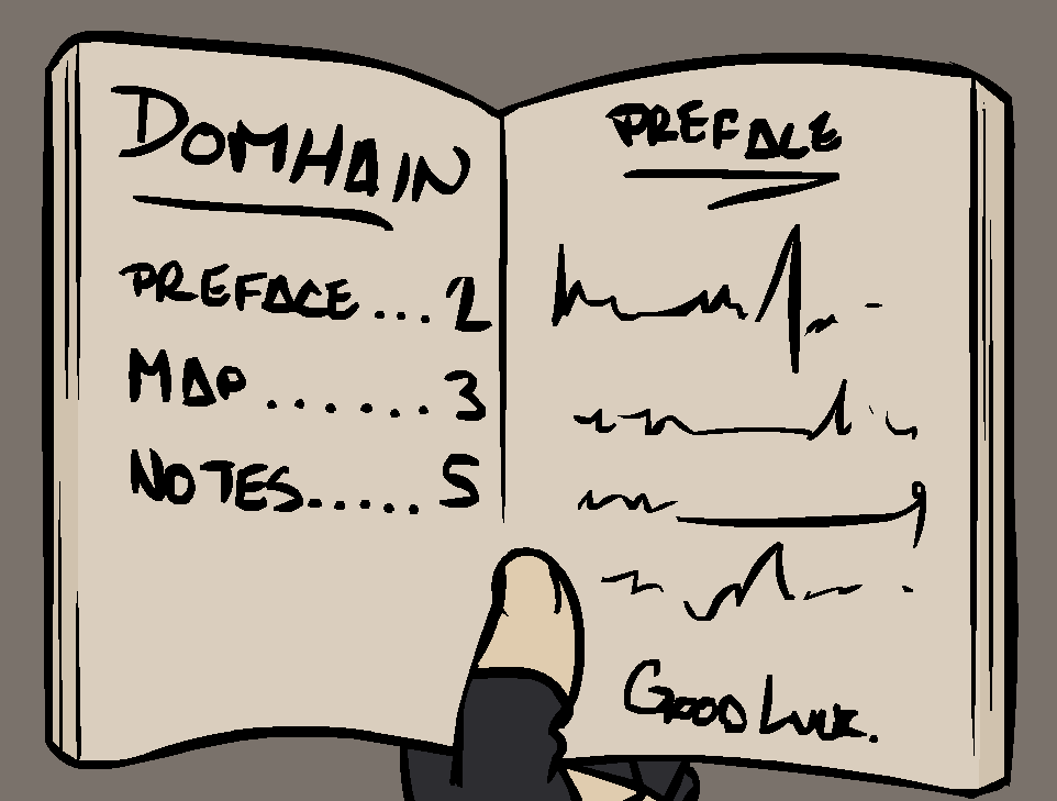 "The Dungeon Domhain," shortened down to just "Domhain" by most of the villagers, is his destination. It has a number of floors, each descending deeper and deeper into the earth, which have unique and, as some residents put it, settling designs.