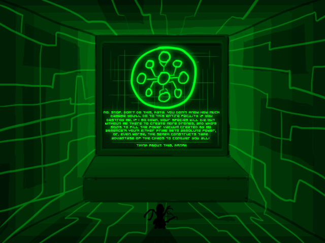 "Eh, I dunno. I don't think the monitor faction had a lot of depth to it. Network Prime's faction just had more going for it. They wanted the complex to have a future. What did the monitors want, anyway?"