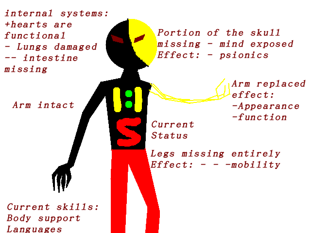 These are my current damages. Using corpse parts is not truly the way I would prefer - but otherwise, I have no options.