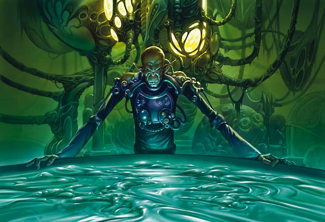 >Myr are ant-like robotic creatures created by Memnarch, the plane's guardian. Each Myr on the plane is remotely connected to Memnarch's "Darksteel Eye," a massive, indestructible chamber that allows him to see through the eyes of any Myr he wishes. Scattered throughout the plane, the Myr are designed to be quiet and unobtrusive, and the majority of races have gotten used to their presence, viewing them as a strange but harmless background object. The majority of Myr conform to a particular standardized design composed of a slight, nimble body and a large, curved, mouthless head, though specialized models exist.