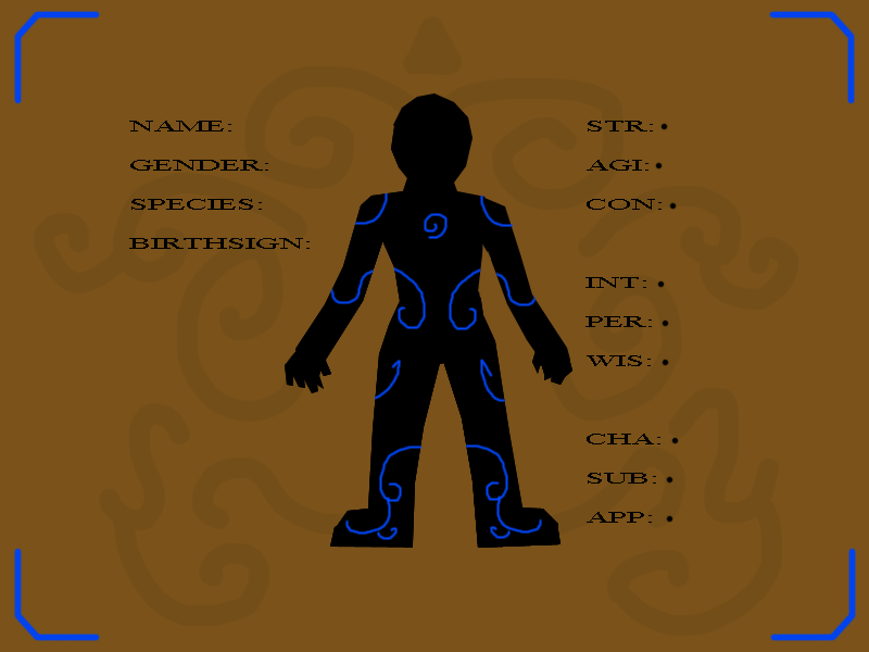Krynthe: A race of slippery, worldly catpeople. They are ruled by the Krynthian Khanate, which tends to be primarily nomadic, its primary strongholds in the desert, and other places no one else would bother to claim. They favor PHYS/MENT/SOCL.