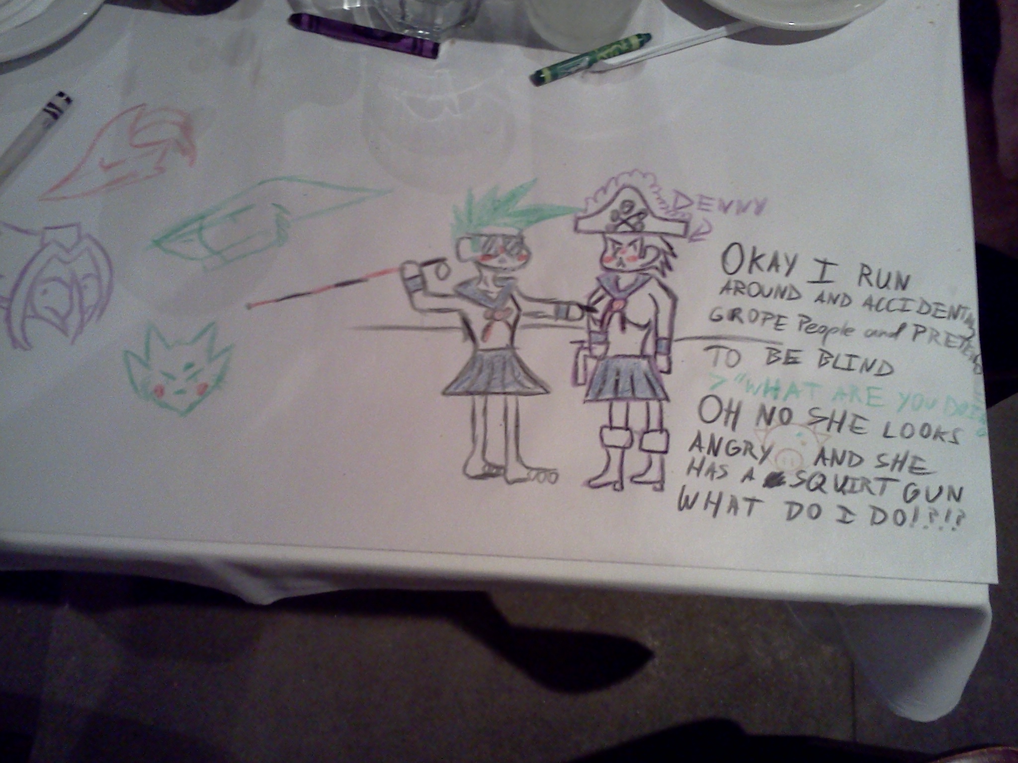 Ask pirate captain lady if she could carry you to the principals office, pwetty pwease with spwinkles on top?