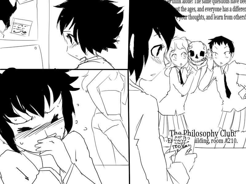 Ah- uhm- So you think I should- I mean- You are sure I should go see the philosophy club..? Ah- I- You're right, I should tell Taisha if I do- Oh- Now that you mention it, I- Uh- It feels like Taisha would be the only one okay with me going to do that..