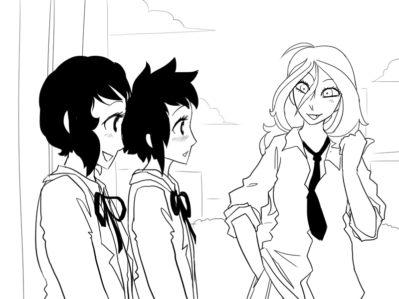 Oh- But- That looks like Penelope and that other tall girl. Except they seem much- uhm- cleaner and not like they haven't been sleeping. Or crying..?