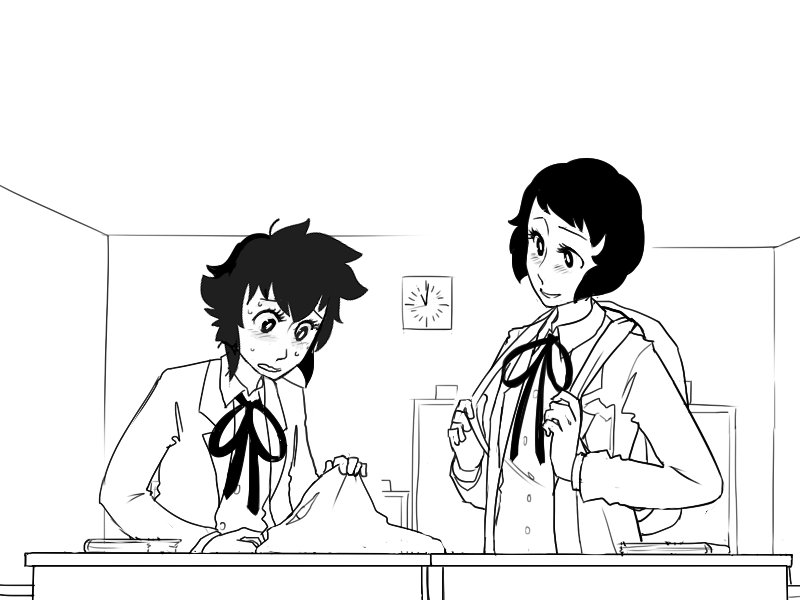 >Taisha: "Oh, Rosho, were you wait-ting? I'm sorry, I'll quickly.."