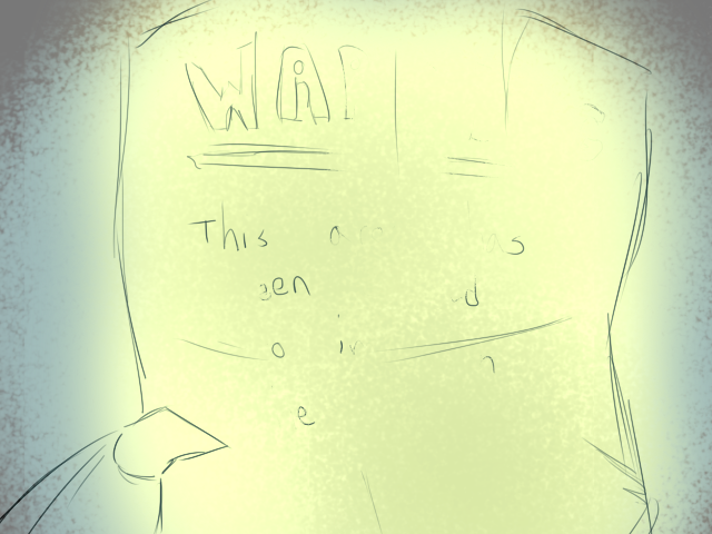 Looks like it says, "WARNING This area has been sealed to, " something something. Could also be blocked, instead of sealed.