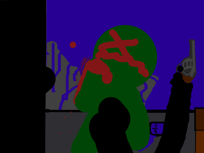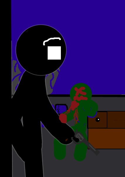 Then he turned. I shot him, point-blank. Right between the eyes. Saw him giggle and laugh right before I pulled the trigger. I felt him clawing at me, trying to pin me down, to push me to the floor.