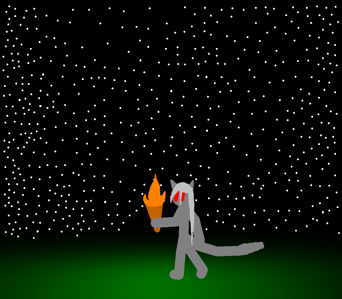He already ran out of my sight. Damn, he ran fast. Anyway, there's no moon out tonight, and the little light there is is coming from this awfully large torch that he left behind when he ran and the many stars in the sky. I think I can see houses in the distance. Also, I have no clothes.