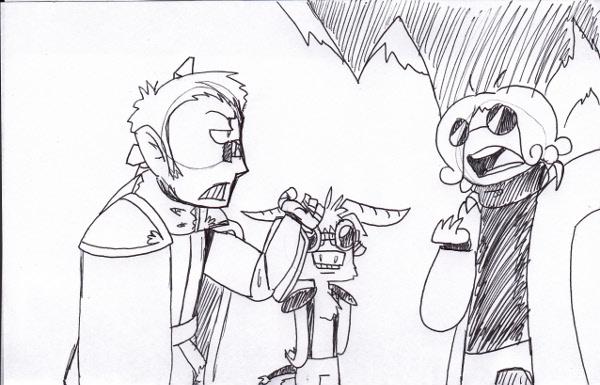 "HOLD ON, for the love of pelor. From what your saying i conclude that your freind was captured by Wargs. But, have no fear madame, we will save your friend from those monstrous vogues."