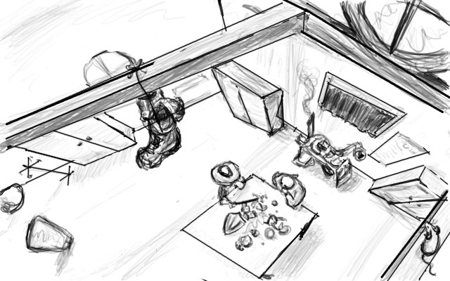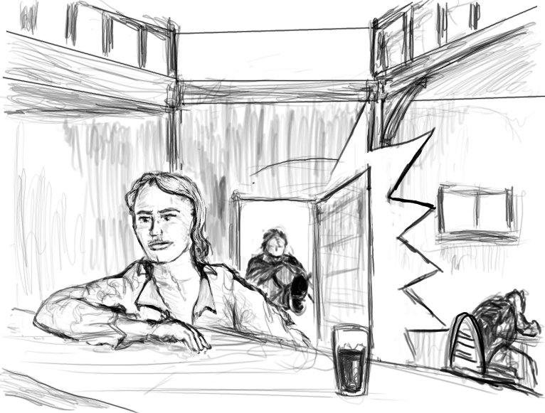 He jumped out at us as we entered the room. We fought for a while, and in the midst of it he got a dart in me. That's basically all there is to it."