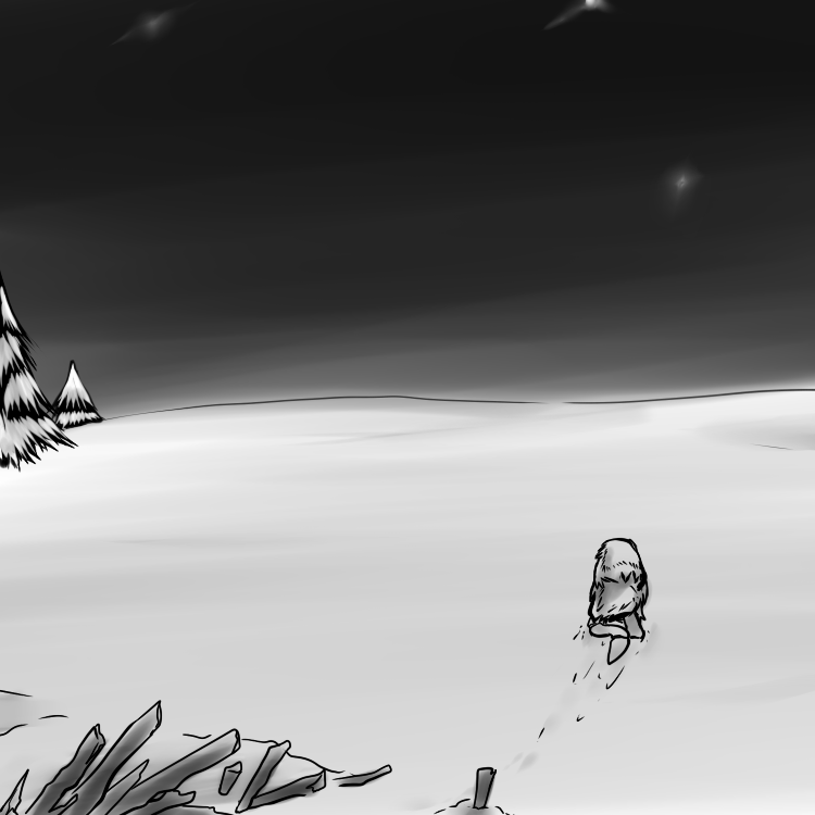 He has traveled for more days than he cared to count, driven on by the calling. He ran out of food some days ago, and the only water he has been able to drink has been through whatever snow he shoveled into his mouth.