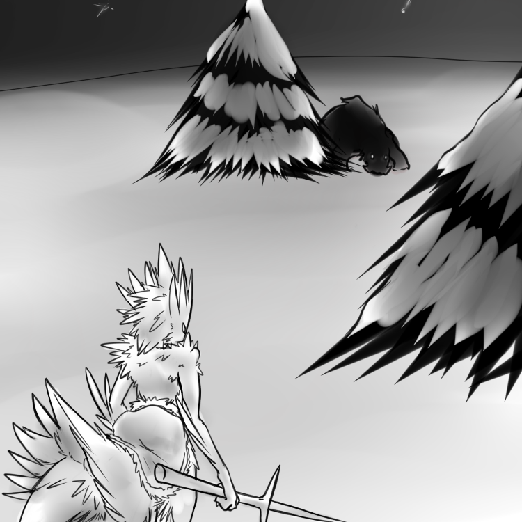 The two Bird Men turn to leave, but Amalthea speaks before they can take wing.