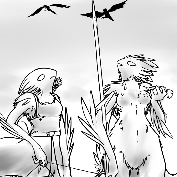 Amalthea and Kleo head toward the town's outskirts, where two of the Flock are waiting. The flock are considerably smaller and more frail than the Chosen, so Amalthea is not particularly worried about them starting a physical confrontation. With two Chosen there, they should almost certainly be cowed enough to avoid a fight.