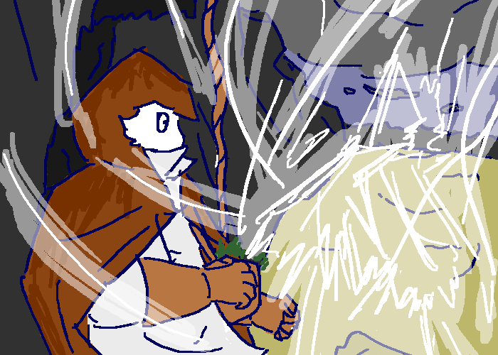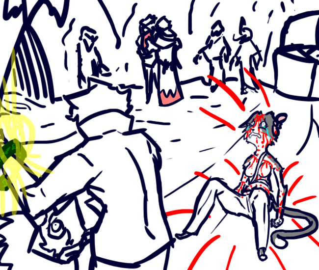 "Hey, a Chatzen is not who I am!" the sangsaloj interrupts. The supposed leader, growing ever more perturbed by the moment, swivels back around to shout at her.