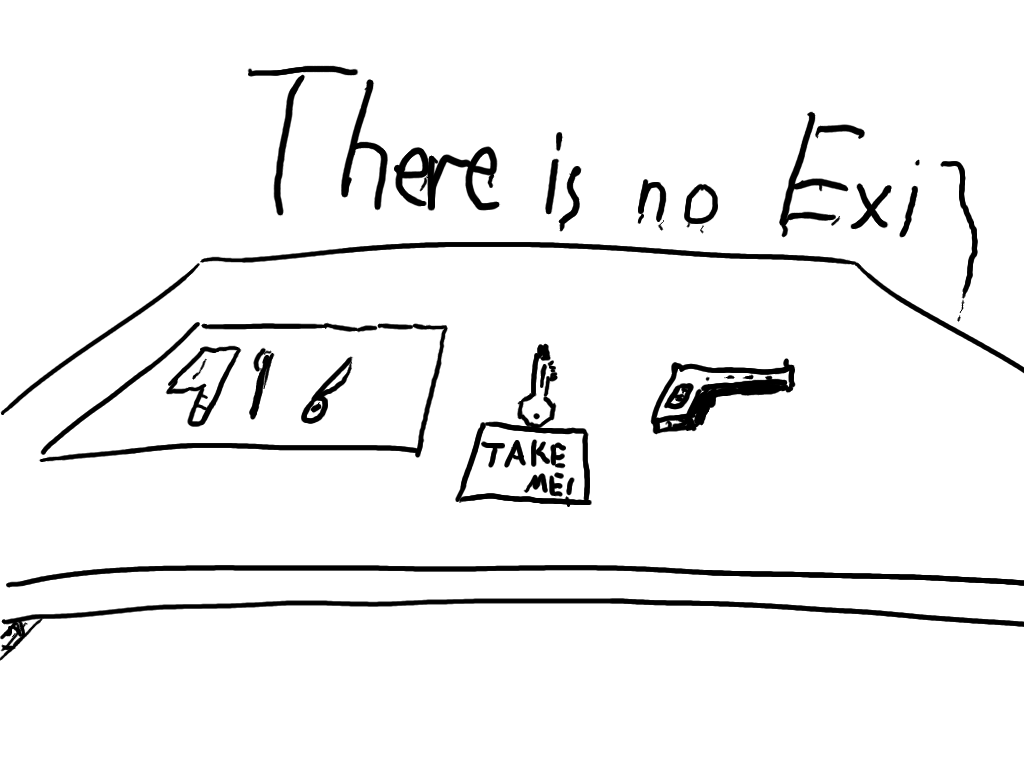 It also looks like someone tried to write a message on the wall with, some strange liquid that has dried. I should hurry, the clock is ticking down quickly. Only 6 minutes left!