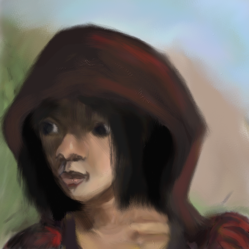 Sarixu smiles at me when I ask her to make herself look harmless. She removes her golden plate mail and hairlocks. Now she looks rather plain and harmless in her odd dark red silk robe. Like a pilgrim of noble birth.