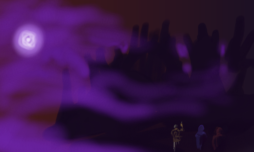We land at the high entrance facing the observatory. A purple figure watches me as I lower myself from Sarixu's back.