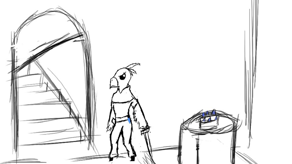 >Hey, that crown (is that a crown over there) is blue like us! Considering we can't see any other colors that might be important.