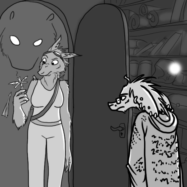 "On the other hand… We're both pretty specialized. Wherever you're going, you might need help with things other than machines and animation magic." Mock looks at Henigmarn. He gives her a reluctant nod. "We've got several apprentices who could probably observe things and maintain the machine almost as well as we could, and they've taken the time to learn other skills too."