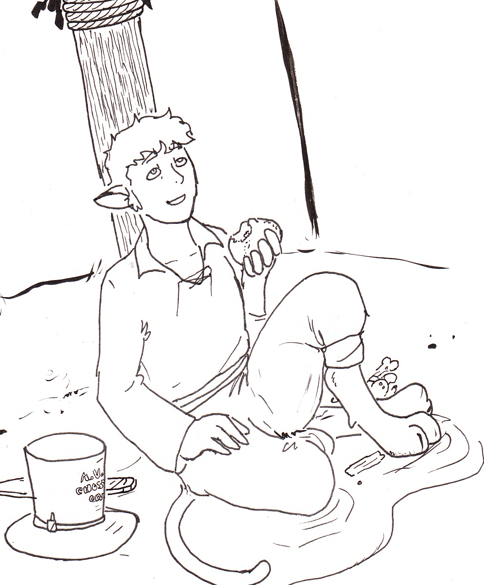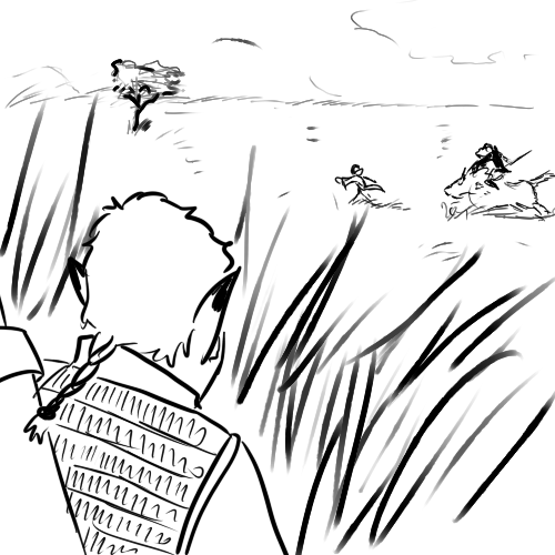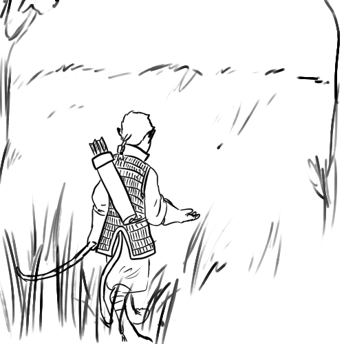 Today is his fourteenth year. This marks his passage to adulthood and with it comes the Great Hunt. This is a rite of passage where a male must survive on the plains for a week. He is giving a full quiver, bow and dagger. After his return, he is accepted as a adult.