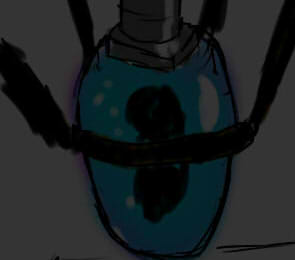 Standard syfy bubbly liquid tank with something/someone inside from what we can tell.