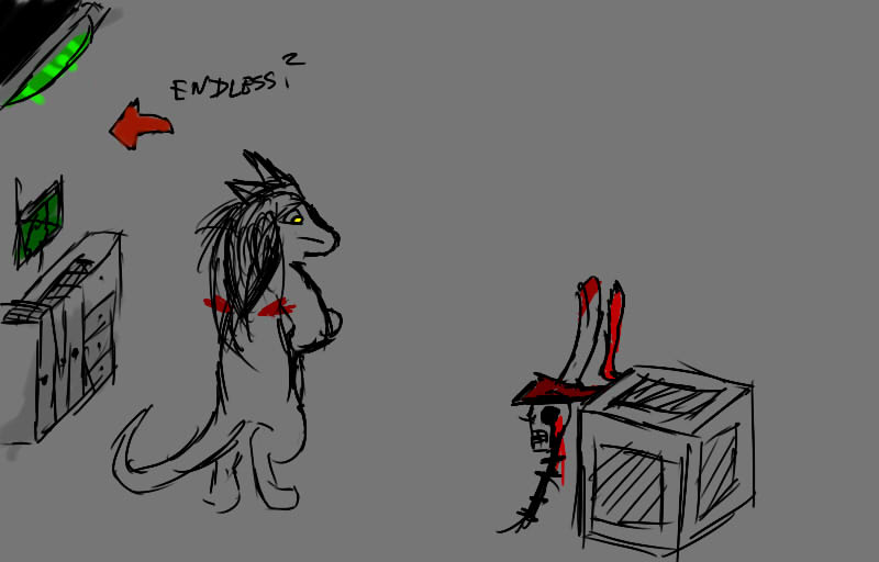 it keeps going into the darkness, there's no -real- lighting here, so our protagonist muses it might be endless? There's a door to one side, back towards the.. egg?