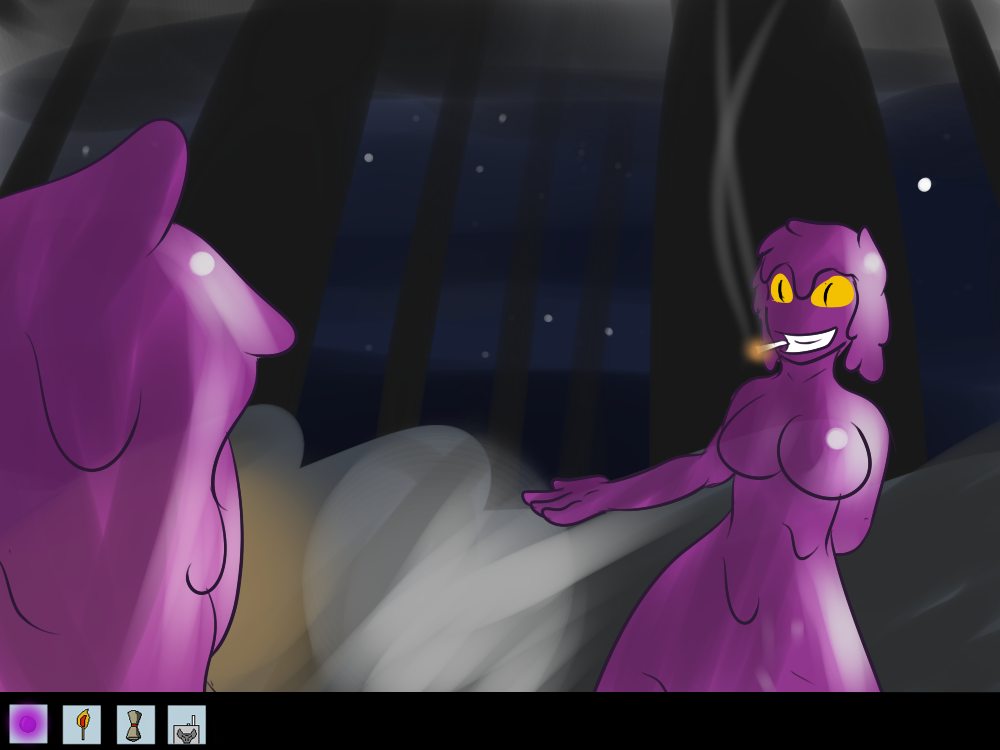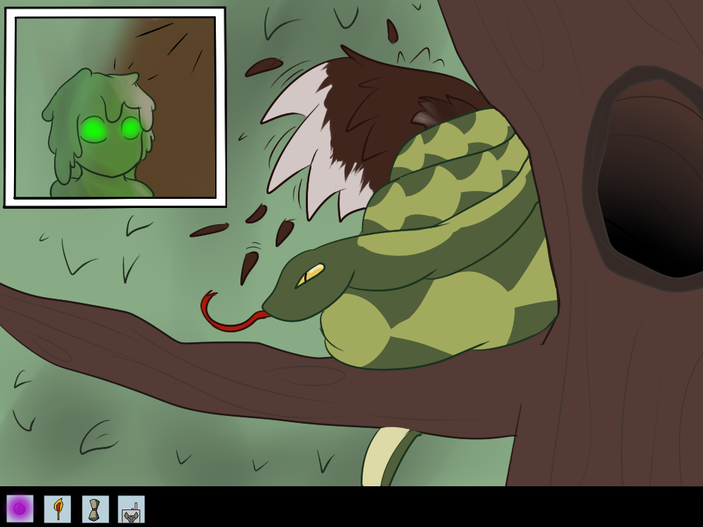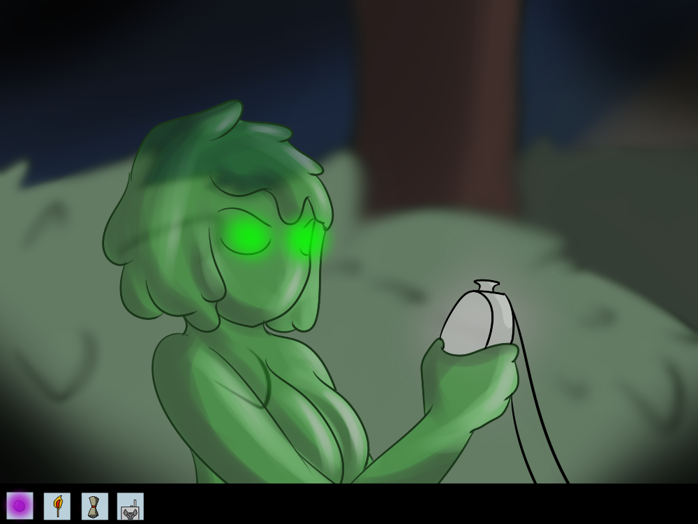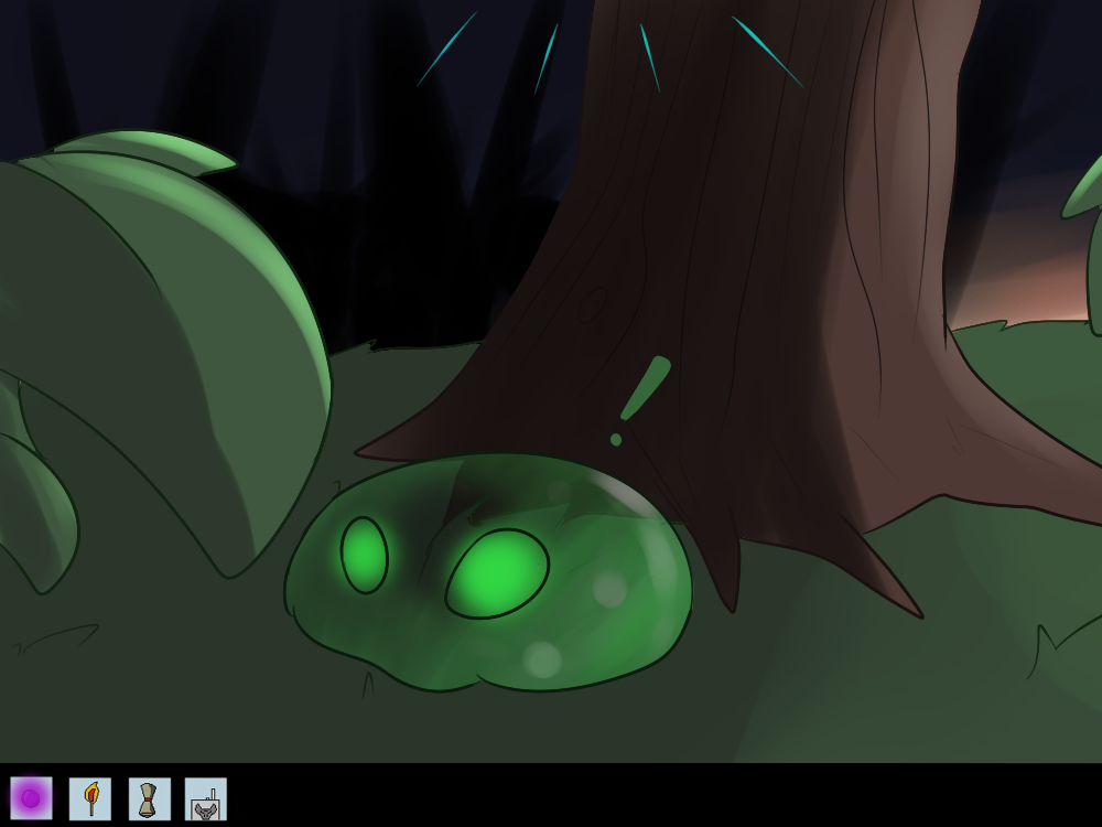 Mechi decides to be as sneaky as she can, sliding out of the road and silently “sliming” her way through the bushes. She starts to hear voices coming from the light too.