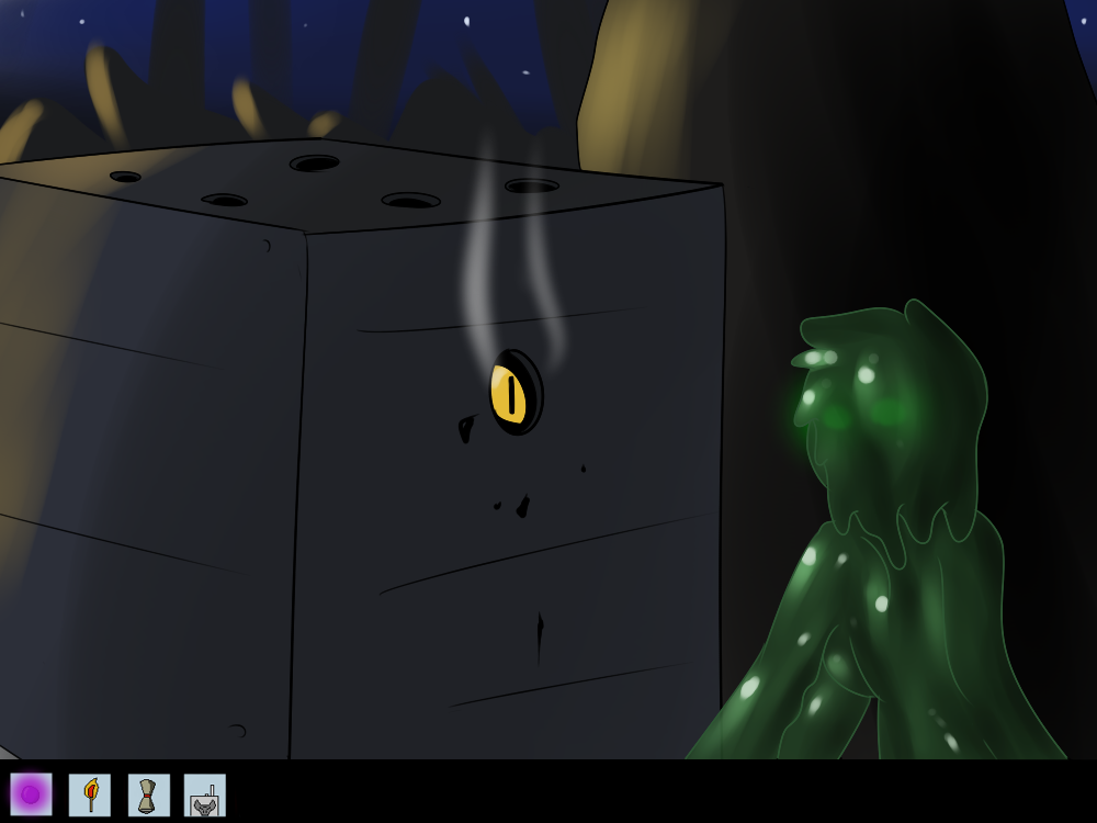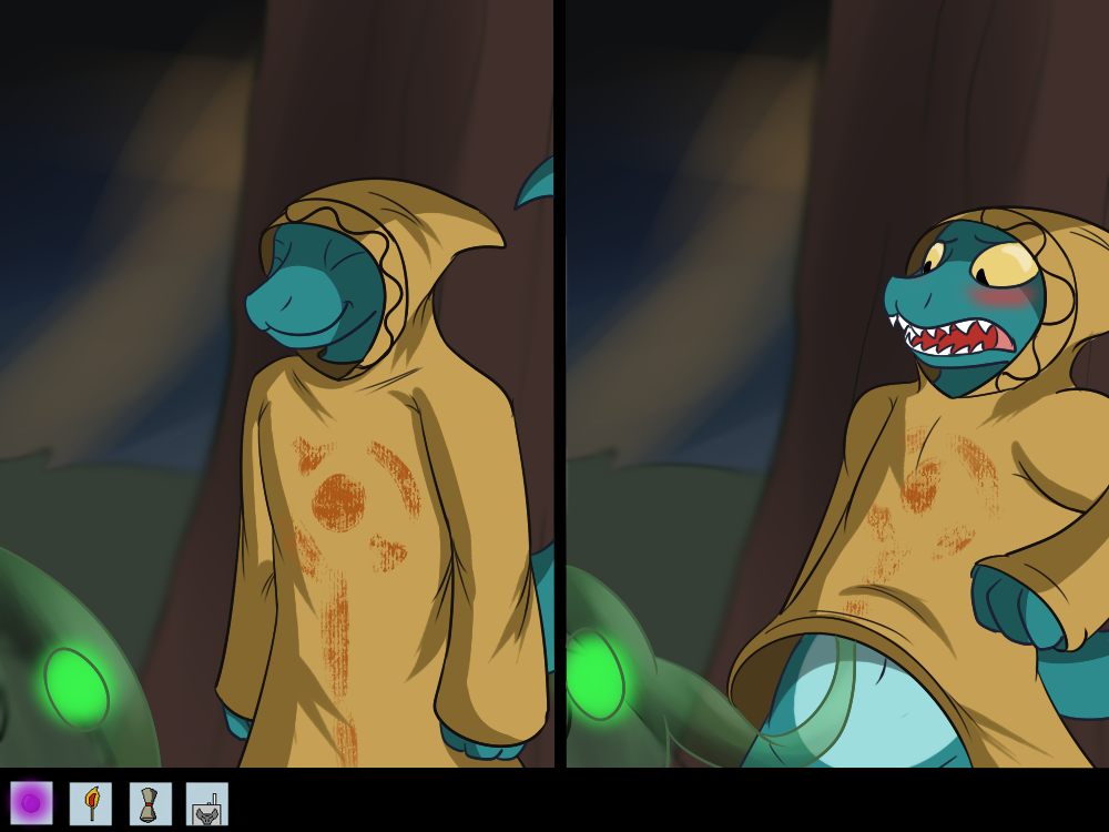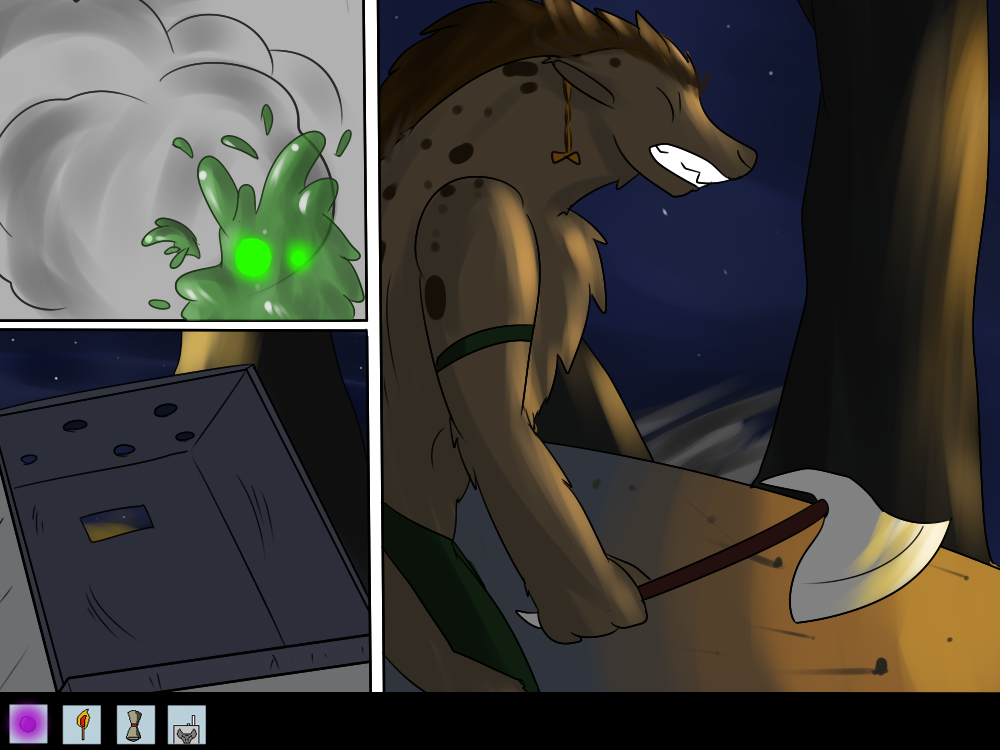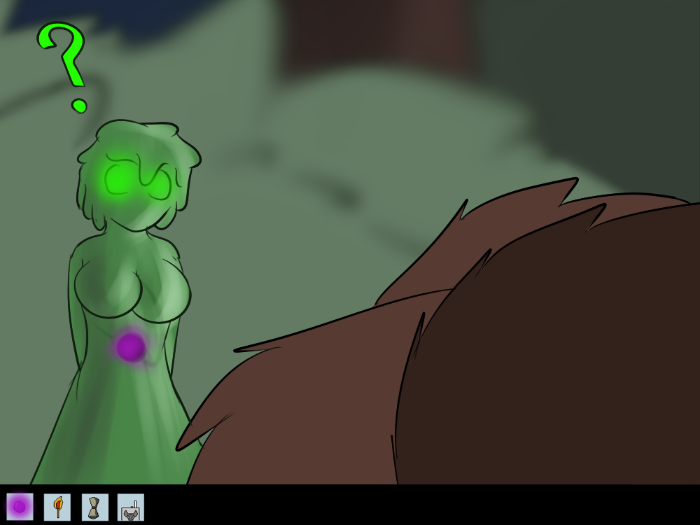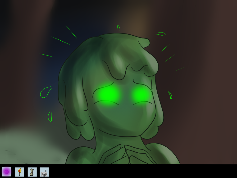 Mechi decides to be as sneaky as she can, sliding out of the road and silently “sliming” her way through the bushes. She starts to hear voices coming from the light too.