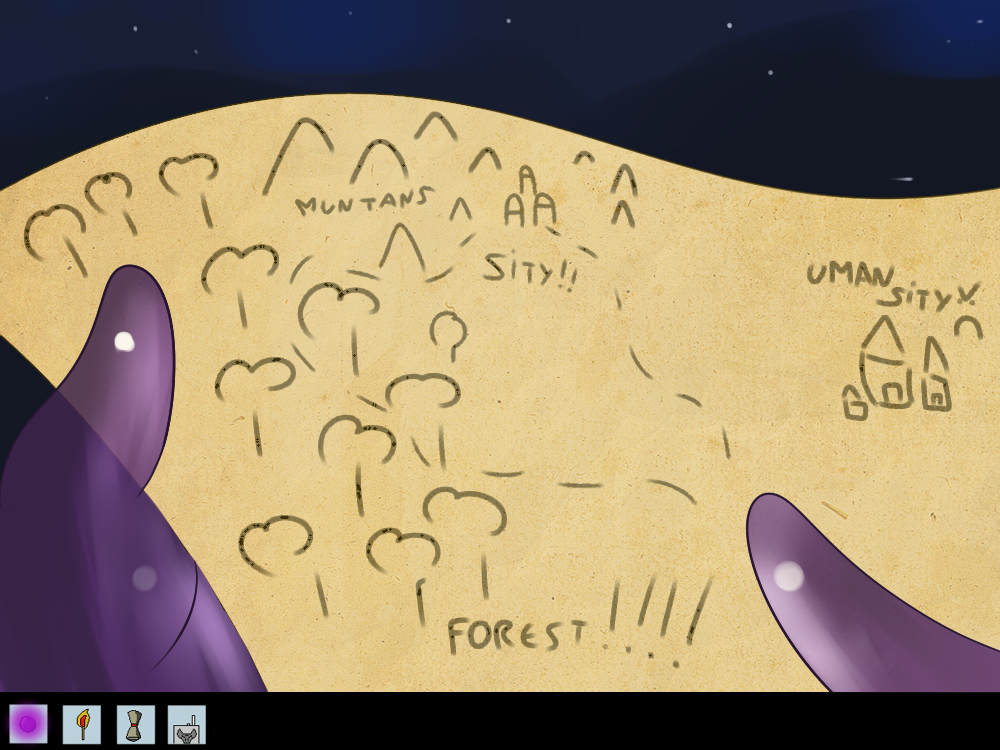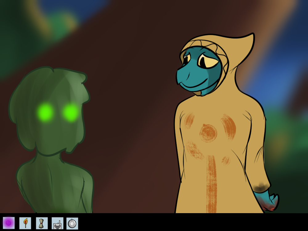 “So! Where do you think we should go? We could head to the mountains! Or I guess if you want to try our luck in another city, I think there’s one not far away. Not like we have to decide any time soon, there’s lot of food in these woods and plenty of places to hide, we could just stay here!”