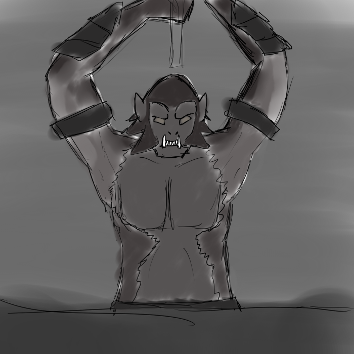 Yeah, me BigBad. Me can crush little rock like puny elf face too. Me no need shiny rock say bad things while me look for shiny magic rock for BossBoss.