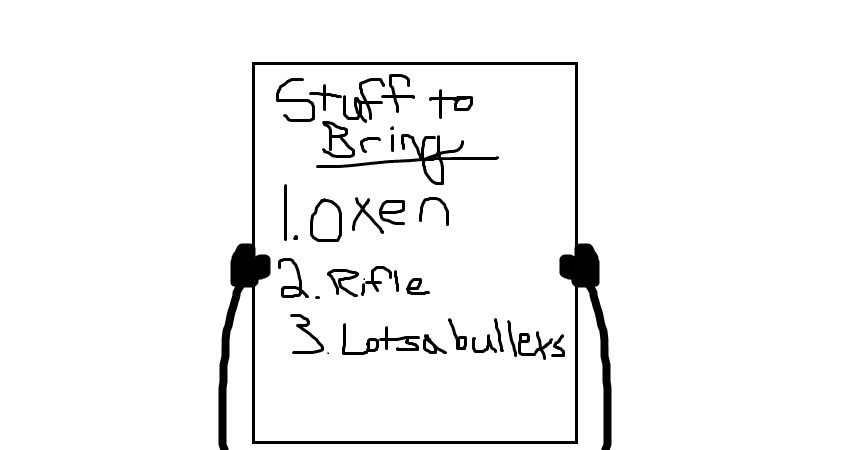 Oxen, rifle, lots of bullets.