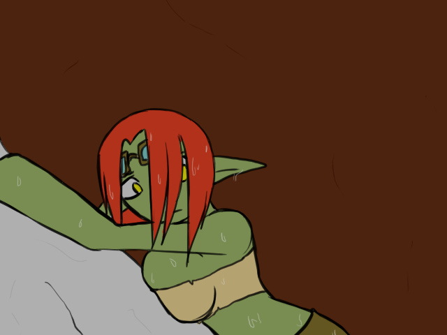 >"The one with the red hair, bushy eyebrows, big tits, nice ass, wears goggles all the time, I thinks she's half-hobgoblin or something too."