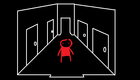 You go to see if anything changed with the scribble men, you walk out into the corridor and the first difference is obvious. There are now doors where the scribbled doors were, and they all seem to be locked- even the one that you went into before. You move on into the room you started out in.